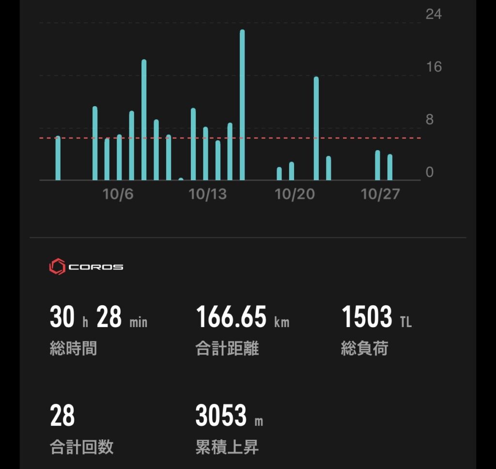 最近ようやく、少しだけ走れるようになってきた。10月は160kmも走ったし、3000mも登った。3年前の3分の1以下だけど。